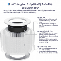 Hệ thống hút khí 360° giúp lọc đều không khí từ mọi hướng, tối ưu hiệu quả trong không gian nhỏ.