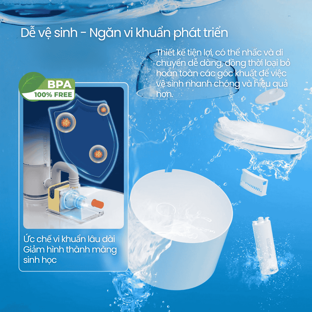Giữ cho mèo luôn uống đủ nước là yếu tố then chốt để duy trì sức khỏe và phòng ngừa bệnh về thận, tiết niệu. Với CATLINK Pure 2, bạn sẽ có một giải pháp cung cấp nước sạch, an toàn, liên tục và dễ quản lý, ngay cả khi bạn không ở nhà.