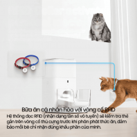 Nhận diện vòng cổ RFID thông minh (không dùng microchip) để xác định mèo và cấp đúng khẩu phần.