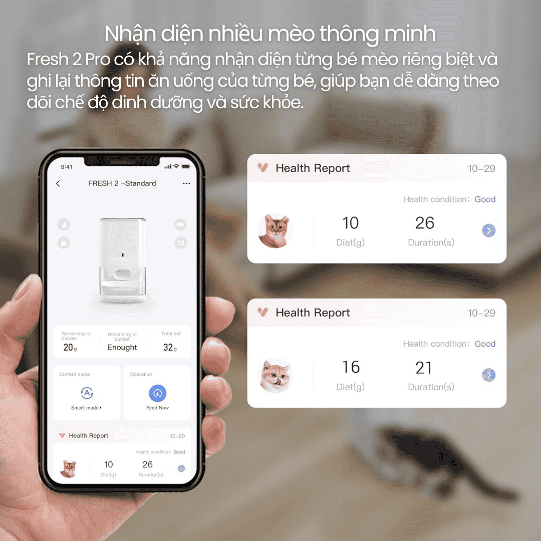 Smart Mode - Tự động bổ sung thức ăn khi lượng trong bát <10g.