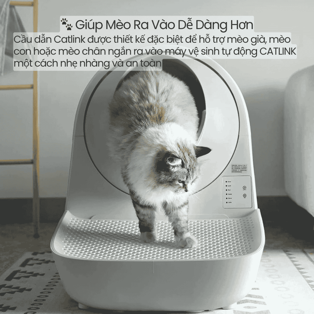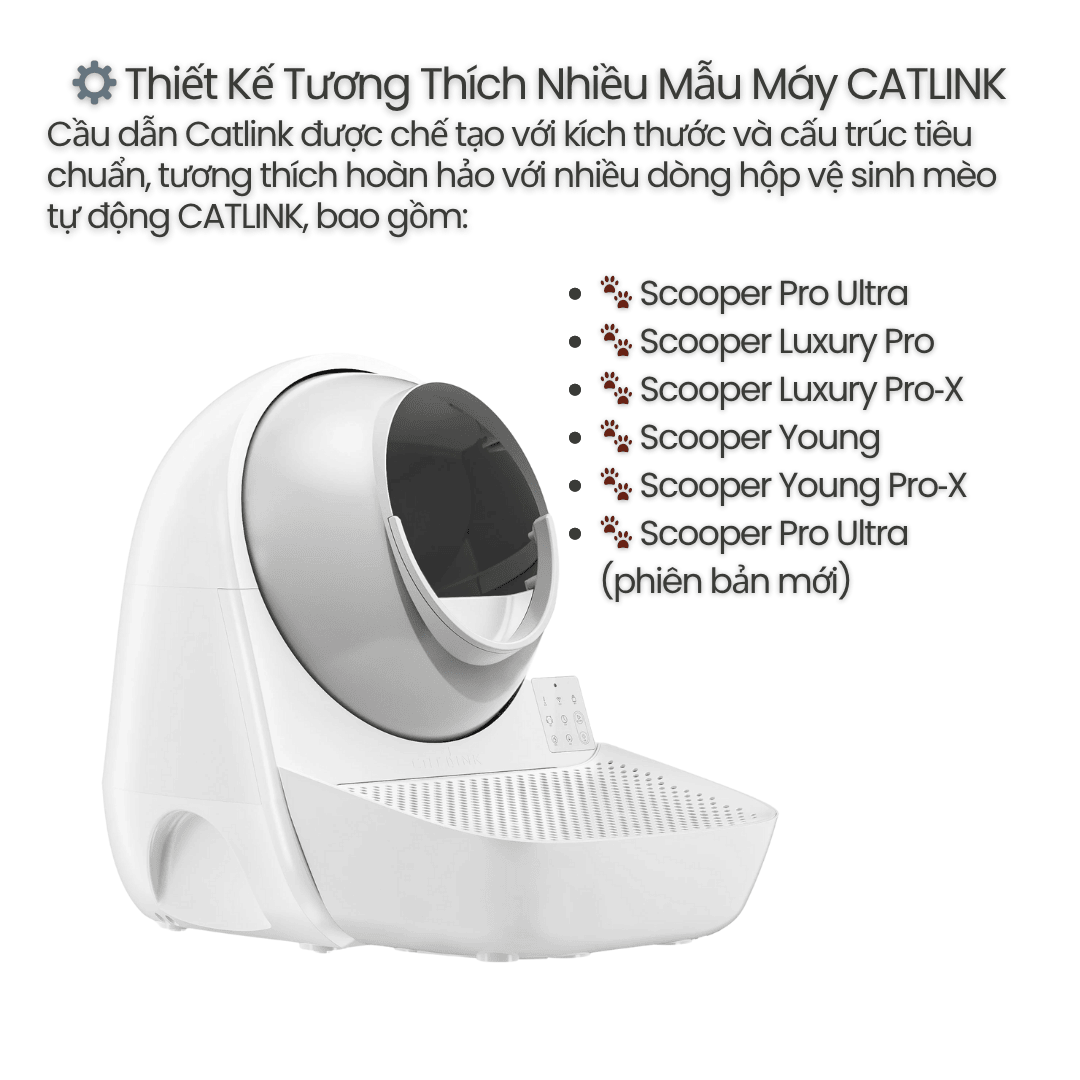 Cầu dẫn Catlink Scooper là phụ kiện được thiết kế tối ưu cho máy vệ sinh mèo tự động CATLINK Scooper, giúp hỗ trợ những chú mèo có khả năng vận động hạn chế như mèo già, mèo con, mèo chân ngắn (munchkin), hoặc mèo đang hồi phục sau phẫu thuật. Sản phẩm không chỉ giúp việc ra vào hộp vệ sinh trở nên an toàn và thoải mái hơn, mà còn giúp giữ sàn nhà sạch sẽ và tối ưu không gian lưu trữ.