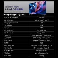 | Tên sản phẩm | Google Tivi Xiaomi A 43 inch Full HD L43MB-AFSEA 2026 |