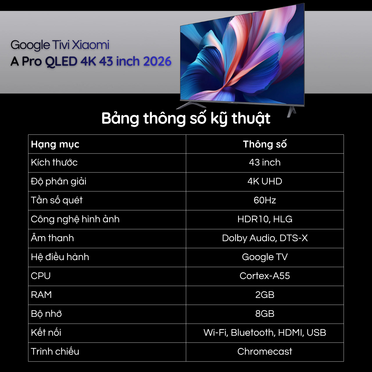 | Tên sản phẩm | Google Tivi Xiaomi A Pro QLED 4K 43 inch L43MB-APSEA 2026 |