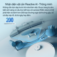 Công nghệ Reactive AI với camera RGB và cảm biến ánh sáng có cấu trúc giúp robot nhận diện hơn 200 loại vật cản như dây cáp, giày dép, bát nước thú cưng…