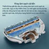 Cảm biến tích hợp trong dock giúp đánh giá mức độ bẩn của nước giặt, từ đó tự động điều chỉnh số lần và thời gian giặt con lăn. Bên cạnh đó, khay rửa được thiết kế tối ưu luồng nước giúp loại bỏ cặn bẩn hiệu quả hơn, hạn chế tắc nghẽn và tiết kiệm nước.