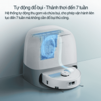 Dock Flow Station™ được trang bị hệ thống hút bụi tự động công suất cao, giúp robot xả sạch bụi trong ngăn chứa chỉ sau vài giây. Túi rác dung tích lớn cho phép lưu trữ bụi đến 75 ngày, giúp bạn hoàn toàn không cần động tay.