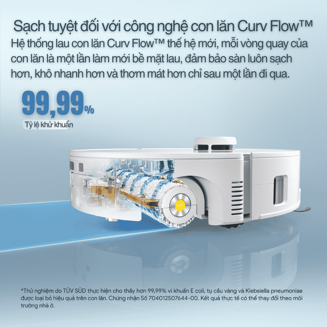 Với lực hút mạnh mẽ 20.000Pa, hệ thống lau con lăn nhiệt cao 75°C, sấy khô 55°C, cùng AI DirTect™ và Reactive AI, Roborock Qrevo Curv 2 Flow không chỉ là một robot hút bụi - mà là người quản gia thông minh giúp bạn tận hưởng ngôi nhà sạch sâu, rảnh tay hoàn toàn.